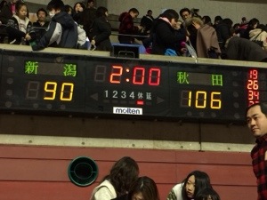 第四クオーターまたも仙台#41ホワイトの1on1からあっさり同点に追いつかれる、その後はシーソーゲームだったが大事な場面で新潟ミス!